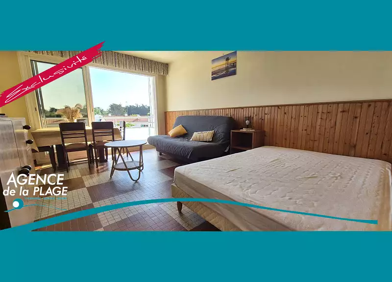 Mdt D4588: --- EXCLUSIVITE --- Dans une résidence face à la plage, appartement comprenant : Entrée, pièce de vie, cuisine, salle d'eau avec wc. Balcon. Cave privée et parking résident. Logement vendu meublé. [ *** visite virtuelle disponible *** ] (8.00 % honoraires TTC à la charge de l'acquéreur.) Copropriété de 72 lots - dont 34 lots habitation. (Pas de procédure en cours). Charges annuelles : 372.78 euros.