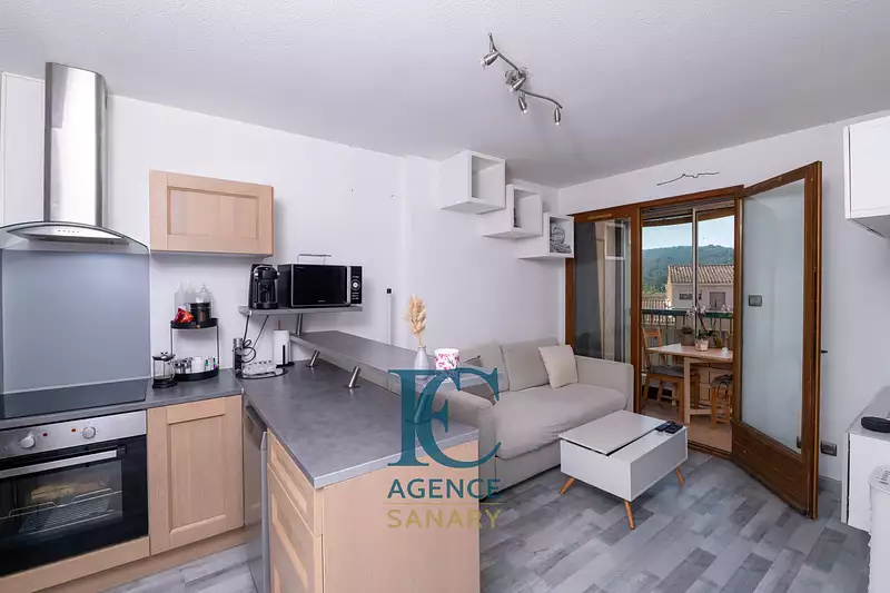 A proximité de la gare de Sanary et à seulement 15 minutes à pied du centre-ville, découvrez ce joli appartement T2 d'environ 28 m2 au 3ème et dernier étage d'une résidence calme avec équipée d'une piscine. Il se compose d'une cuisine ouverte aménagée et équipée, d'un séjour lumineux avec climatisation donannt sur une agréable terrasse orientée sud ouest, d'une chambre avec placard, d'une salle d'eau et d'un WC indépendant.