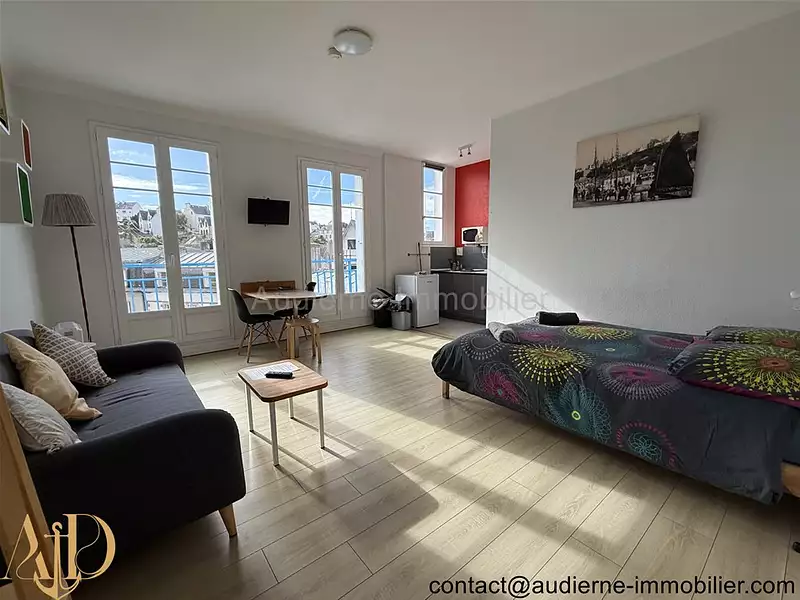 A vendre à AUDIERNE dans le FINISTERE (29), un studio placé au 3ème et dernier étage d'une petite copropriété. Idéalement placé à proximité de tous les commerces et en retrait de la route, cette petite copropriété de 9 lots est très bien entretenue et le syndic prouve la bonne tenue de l'ensemble (carnet d'entretien à jour, charges de copro correctes, entretien des communs...).
