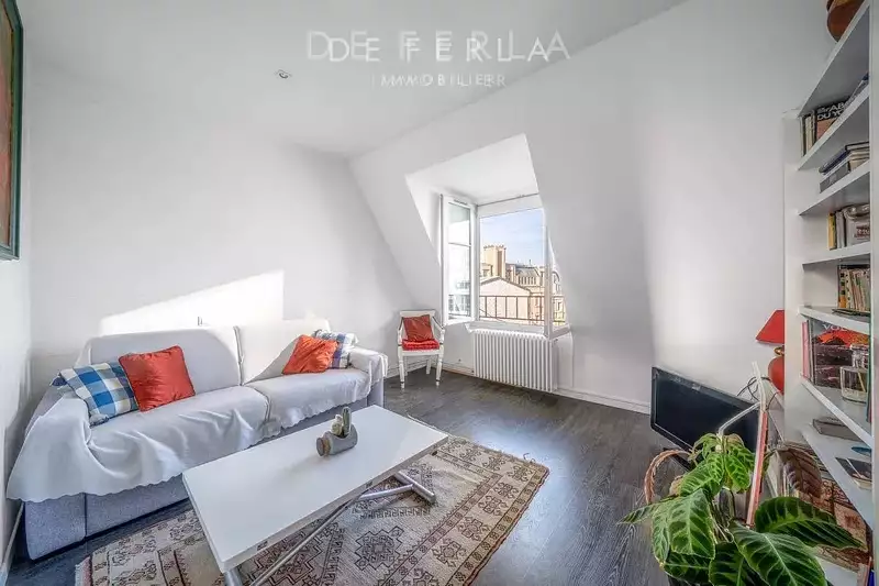 Dans un immeuble Art déco des années 1930, un studio situé au 7ème et dernier étage avec ascenseur de 27,32 m2 au sol et 24,80 m2 en Loi Carrez.