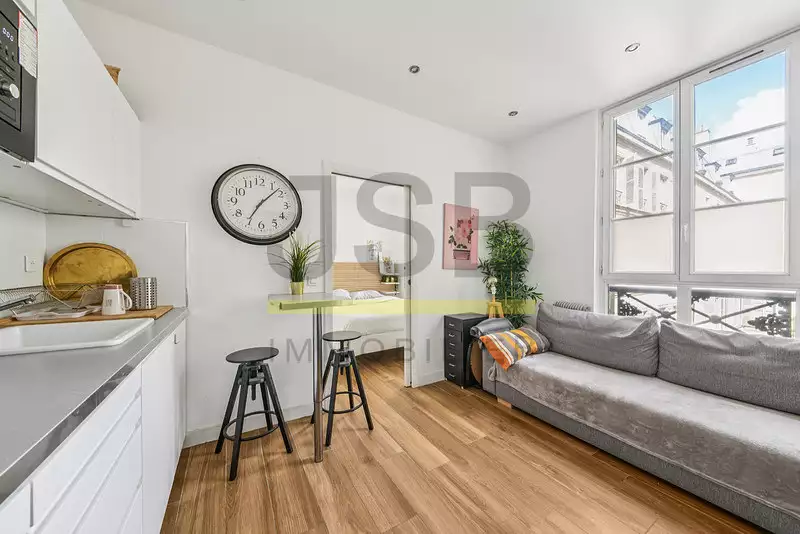 75009 - JSB vous propose en exclusivité, Rue de la Grange Bateliere, dans un immeuble en Pierre de taille, un très bel appartement de 2 pièces au 4ème étage avec ascenseur d'une superficie de 28,22 m2. Composé d'une entrée/coin bureau, une pièce de vie avec cuisine ouverte équipée, une chambre, une salle d'eau, et un wc. Calme, lumineux, très bon état. Quartier central, vivant, avec transports et commerces à proximité directe.