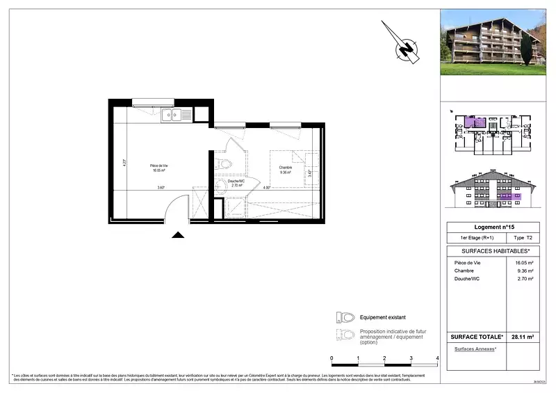 | 28,11 m² - 2 pièces - 1 chambre | Étage 1/3 |