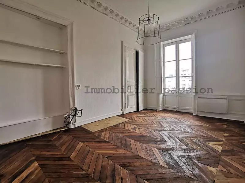 ANGERS RALLIEMENT: Superbe studio avec cachet, rénové, entrée, belle pièce de vie avec BALCON, rosace et moulures, SDE en bon état. Mezzanine possible (très haut plafond).