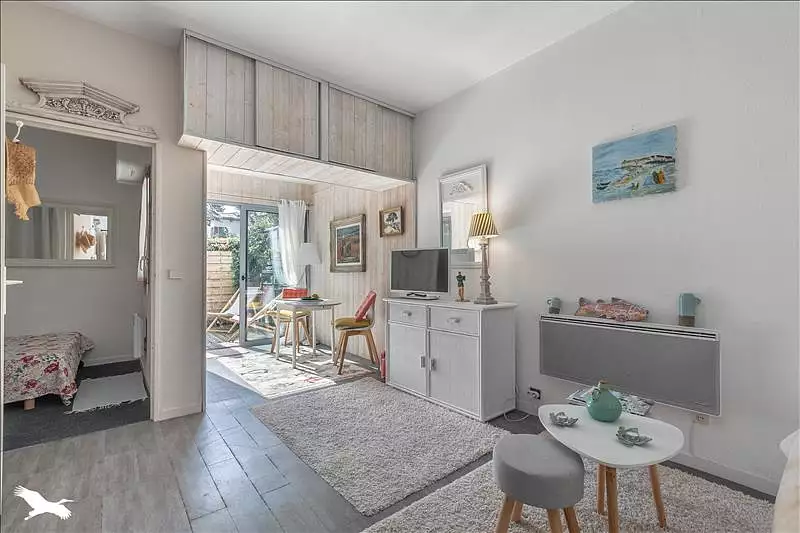 Arcachon quartier du Moulleau , appartement en RDC à quelques mètres de la plage de type 2 et de belles hauteurs sous plafond . Parking commun, idéal résidence secondaire et locatif .