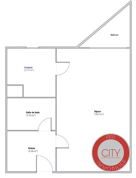 | Séjour de 19 m² | 1 salle de bain |