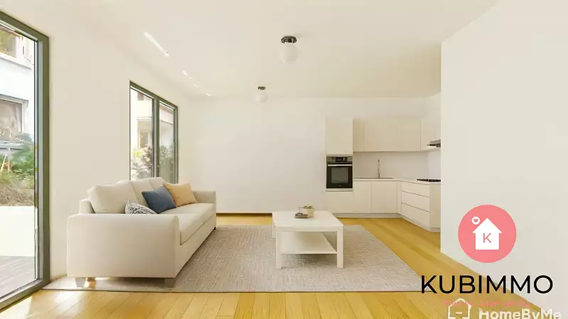 Description : Séjour / Cuisine bien exposé SUD avec accès direct à une terrasse et jardin, une salle d'eau avec WC.