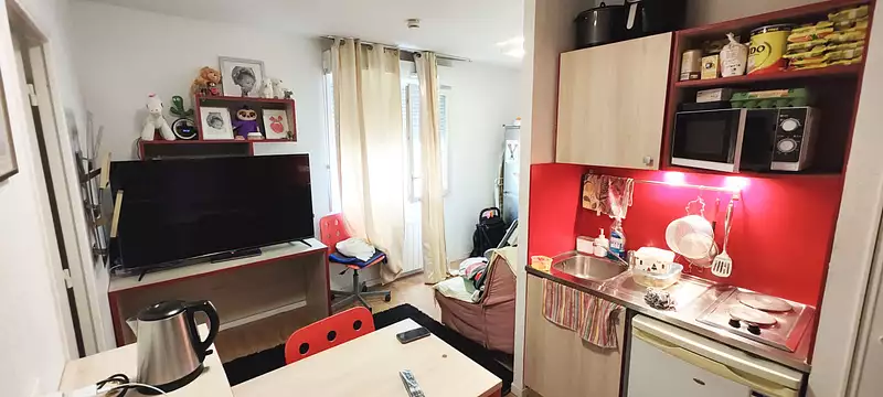A VENDRE!! T2 de 29.2 m² au 6ème étage d'une résidence étudiante meublé disposant de nombreux rangements, placards aménagés, étagères et penderies. Cet appartement est entièrement autonome grâce à sa kitchenette équipée d'un four à micro-onde, de plaques électriques et d'un réfrigérateur mais également de sa salle d'eau avec WC privatif, lavabo avec meuble vasque et cabine de douche. Prestation de services: internet WIFI illimité et gratuit, accueil, digicode, salle fitness, nettoyage du logement, laverie. Bien loué! Appartement idéal investisseur, loué sous bail commercial 5242 euros HT annuel. A proximité de la Gare Jean Macé, Métro ligne B, arrêts Jean Jaurès et/ou Debourg, Tramway T2, centre commercial à 200 m , nombreux commerces. A voir absolument ! Prix Frais d'Agence Inclus : 112 600 euros , charge vendeur. Pour plus de renseignements contactez l'agence GEDIMMO 04.37.23.11.61 ou au 06 85 43 59 27 avec la référence suivante : SEVENLODGE602A Copropriété de 59 lots (Pas de procédure en cours). Charges annuelles : 381.26 euros.