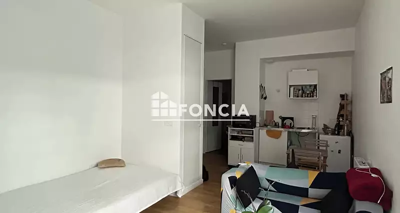 Ce bien est soigneusement aménagé avec des espaces bien définis. Vous trouverez en entrant un espace de rangement pratique, une kitchenette fonctionnelle, une salle d'eau permettant d'accueillir une machine à laver et une spacieuse pièce de vie intégrant un coin nuit.