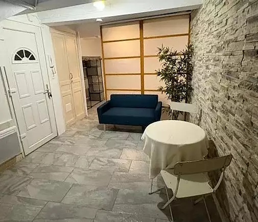 Le salon dessert un coin chambre d'un côté et une cuisine aménagée et équipée de l'autre. Une salle d'eau avec WC complète le bien.
