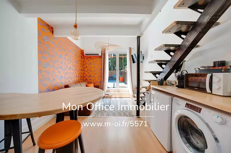 Découvrez une pièce de vie lumineuse de 16 m² avec une cuisine ouverte entièrement équipée, soulignée par des finitions de qualité et agencements sur mesure. Un escalier ferronerie d'art en bois exotique mène à une mezzanine de près de 14m2 accueillant une chambre avec salle d'eau attenante pour un confort optimal. L'ensemble est soigneusement rénové.