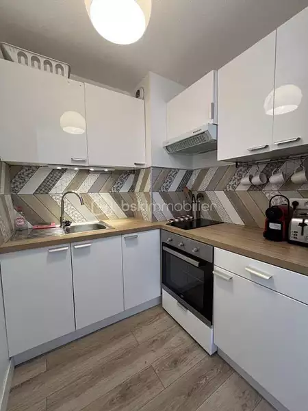 L'appartement se compose d'un séjour lumineux avec une cuisine moderne et entièrement équipée, d'une chambre avec placard intégré et porte coulissante, ainsi que d'une salle d'eau fonctionnelle avec WC, pouvant accueillir aisément une machine à laver.