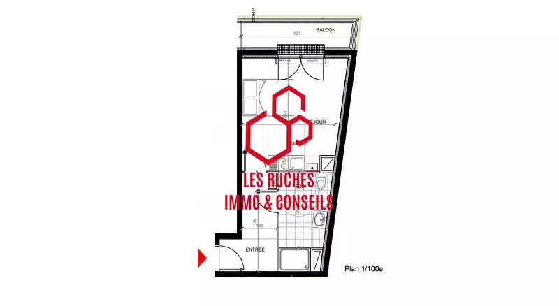 | 30,77 m² - 1 pièce | Étage 1/3 avec ascenseur |