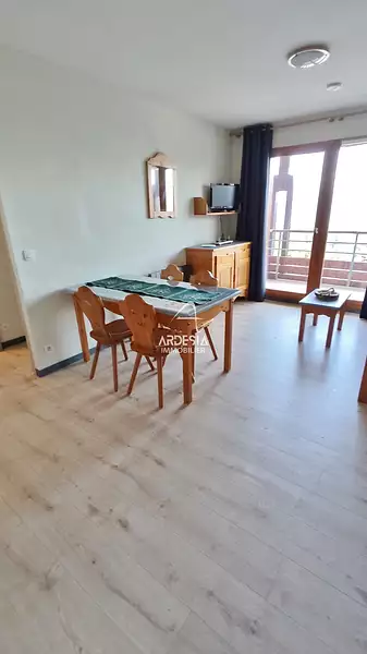 LE CORBIER, STATION DE SKI. Sur la commune du Corbier, ARDÉSIA IMMOBILIER vous propose un appartement de type T2 au 2ème niveau de la résidence des Pistes. Vue superbe sur les montagnes de la Vallée de la Maurienne. Accessible via un ascenseur. La résidence a été construite en 2001. Espace cuisine ouvert sur le séjour, une chambre, une salle de bain, toilettes séparées. À l'extérieur, vous disposerez d'un balcon extérieur de 4.85m2. Emplacement de parking extérieur.