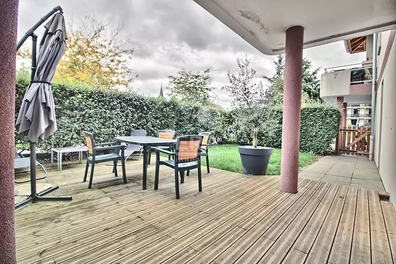 L'atout majeur de ce bien est son espace extérieur privilégié : une terrasse de 18 m² et un jardin privatif de 60 m² offrant un véritable havre de paix. Ces extérieurs sont accessibles depuis le séjour-cuisine ainsi que par la chambre.