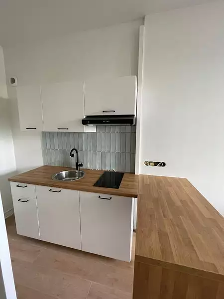 Appartement agréable refait à neuf avec une cuisine, une salle d'eau et une chambre.