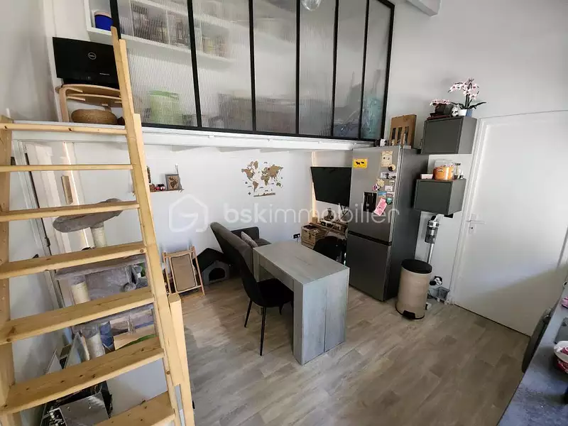 Il se compose d'un séjour LUMINEUX avec cuisine ouverte , d'une CHAMBRE COSY et d'une salle d'eau avec WC .