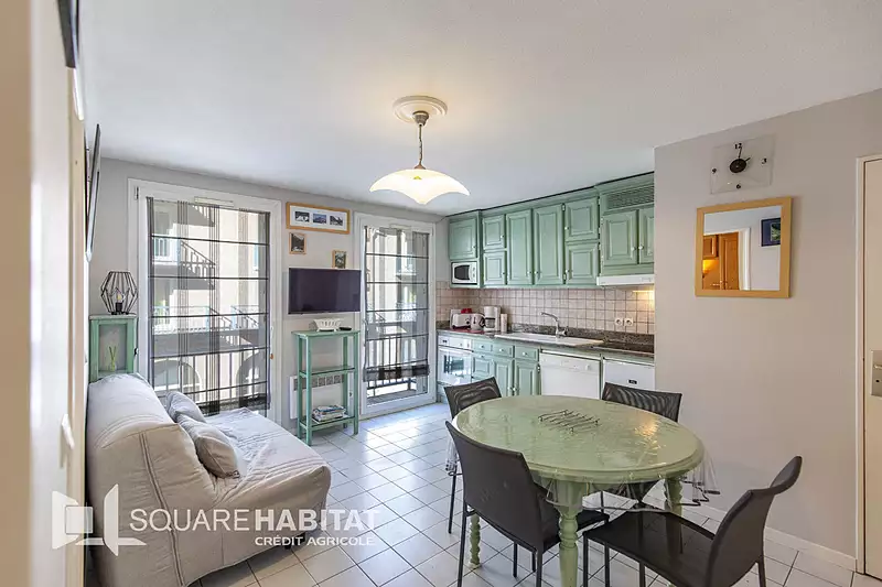 Idéalement situé en centre-ville de Cauterets, dans une résidence avec ascenseur, appartement T2 bis d'environ 31m2 avec balcon exposé Ouest et PLACE DE PARKING PRIVATIVE en sous-sol. Il comprend une entrée avec cabine desservant un séjour avec cuisine ouverte aménagée, une chambre, une salle d'eau et un wc séparé. Emplacement très recherché et belle vue! Capacité : 4 couchages.