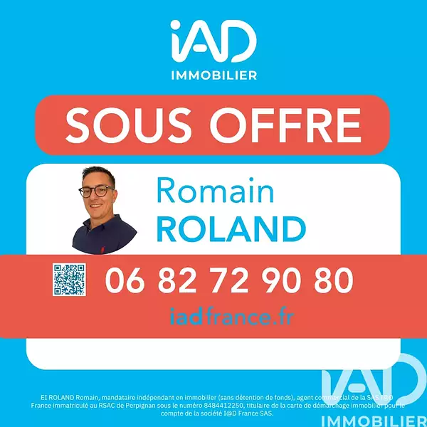 La présente annonce immobilière a été rédigée sous la responsabilité éditoriale de M Romain Roland mandataire indépendant en immobilier (sans détention de fonds), agent commercial de la SAS I@D France immatriculé au RSAC de PERPIGNAN sous le numéro 848412250, titulaire de la carte de démarchage immobilier pour le compte de la société I@D France SAS.
