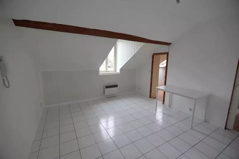 CENTRE VILLE - Place de la Mairie. APPARTEMENT en dernier étage. comprenant: séjour avec coin cuisine aménagée, chambre, chambre/bureau, salle de bains avec wc. Chauffage individuel électrique. production eau chaude par ballon électrique. Fenêtre bois double vitrage. Surface privative habitable de 31,73m² (46m² au sol). Faibles charges de copropriété. Commerces et services à proximité. Gare (futur RER) et BUS. Résidence principale ou projet investisseur.