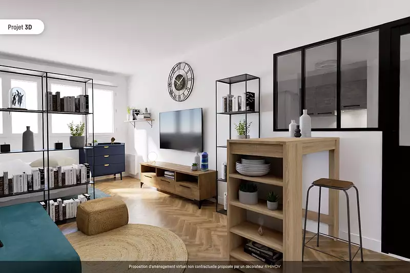 Il se compose d'une pièce principale spacieuse pouvant permettre une délimitation en espace nuit, une cuisine ouverte, une salle de bains ainsi qu'une WC indépendant.
