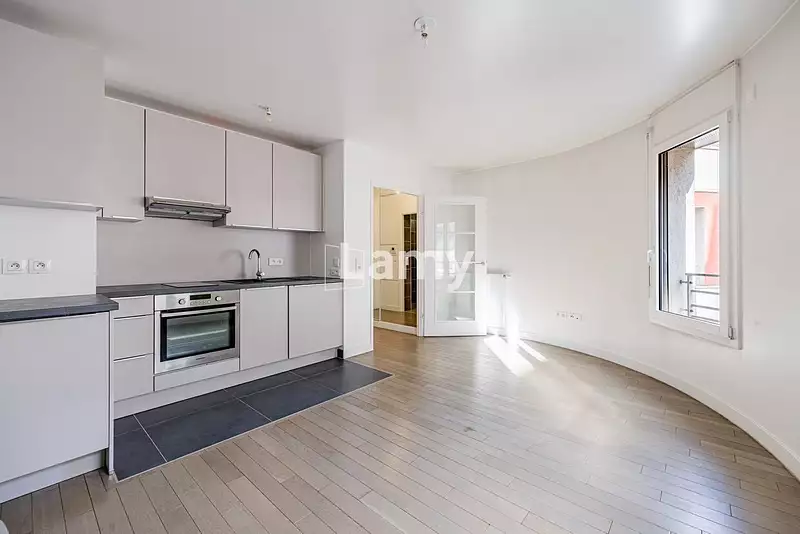 Paris 19e, rue de Thionville, à deux pas des quais de l'Oise, au quatrième étage d'une belle résidence de 2015, Studio tout confort d'environ 32 m². Belles prestations. Il se compose d'une entrée avec rangements, d'une belle pièce de vie (lit escamotable et dressing), d'une cuisine ouverte et d'une belle salle de bains avec WC. Exposé Est. Beau produit. A saisir !