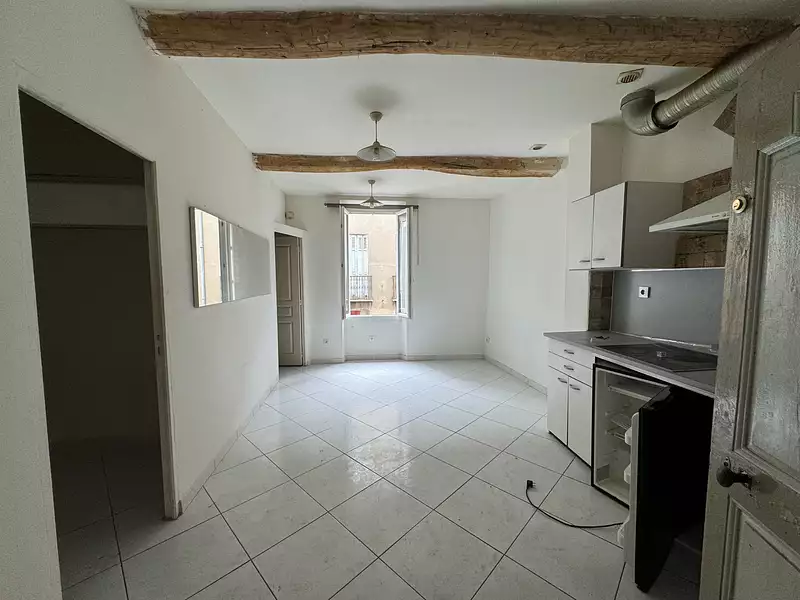 Au coeur du centre ville de Vidauban, au 1er étage d'un immeuble de 4 niveaux, appartement d'environ 30 m2 comprenant actuellement un séjour cuisine de 17 m2, une salle de bain et deux petites pièces de plus de 5 m2 chacune que l'on peut réunir pour créer une vraie chambre