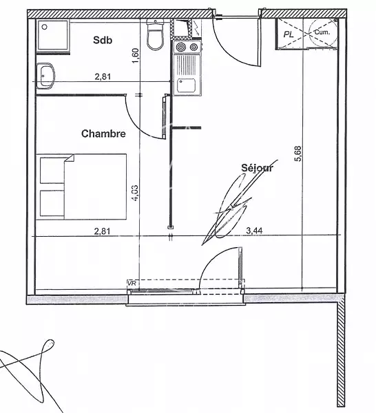 | 32,15 m² - 2 pièces - 1 chambre | Dernier étage |