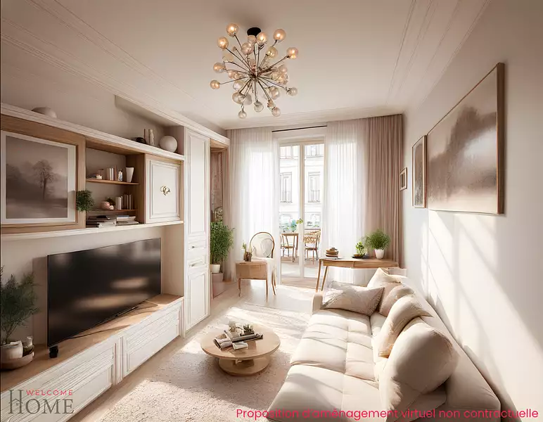 L’agence Welcome Home et Nicolas DELIVET vous présente… Ce 2 pièces idéalement situé à proximité immédiate de la Mairie de Clichy, un véritable cocon qui allie praticité et style. Avec une surface de 31,69 m2 Loi Carrez, cet appartement au 2è étage avec ascenseur se distingue par sa belle hauteur sous plafond de 2,80 mètres, créant une atmosphère spacieuse et lumineuse qui vous séduira dès votre entrée. Un espace de vie à personnaliser : L’appartement se compose d’une belle pièce de vie, parfaite pour aménager un coin salon confortable et un espace de travail inspirant. Grâce aux projections en home staging virtuel, vous pourrez visualiser le potentiel de cet espace : imaginez un intérieur moderne et chaleureux, avec des touches de décoration qui reflètent votre personnalité. Que ce soit un coin lecture cosy, un espace de travail fonctionnel ou un salon accueillant pour vos amis, cet appartement est une toile vierge prête à accueillir vos idées. Une cuisine indépendante fonctionnelle : La cuisine indépendante vous permet de préparer vos plats préférés en toute tranquillité. Visualisez-vous en train de concocter de délicieux repas, entouré d’un décor élégant et pratique, où chaque détail a été pensé pour votre confort.