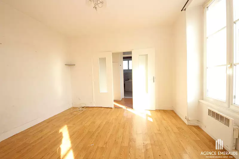 L'agence Emeraude de Dinard vous propose à la vente cet appartement de type 2 composé de : Entrée avec placard, cuisine, séjour, salon, une chambre, salle d'eau-wc. Orienté au Sud, il offre une belle luminosité. Situé à l'abris de toutes nuisances, la plage de l'écluse est à 300 mètres, les commerces et la place du marché à quelques pas. Travaux à prévoir. Pour toutes informations, contactez l'agence emeraude à Dinard 48 rue Levavasseur 35800 DINARD, référence 3783. 0299461101 - (4.80 % honoraires TTC à la charge de l'acquéreur.) Copropriété de 23 lots - dont 13 lots habitation. (Pas de procédure en cours). Charges annuelles : 1459.23 euros.