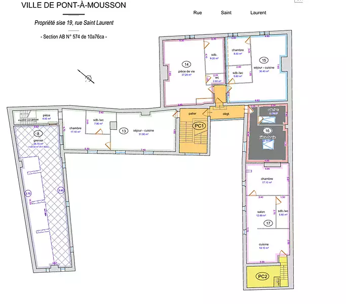 Plateau à aménager au 2ème étage 1 minute a pied de la place Duroc PONT-A-MOUSSON Situé au 2ème et dernier étage d'un immeuble bien situé, ce plateau de 31,6 m²(voir zone grisé sur plan) est idéal pour créer un appartement T1 fonctionnel, parfait pour un pied-à-terre, un premier achat ou un investissement locatif classique ou saisonnier. Possibilité d'aménagement en pièce de vie avec cuisine ouverte, salle d'eau avec WC, et coin nuit avec une belle pièce principale de plus de 22 m². Situé proche de toutes commodités, de la gare et à moins d'une minute à pied de la place Duroc. Un lieu chargé d'histoire au coeur de Pont-à-Mousson Situé dans le centre historique de Pont-à-Mousson, l'immeuble témoigne du patrimoine architectural de la ville. Bâti au tournant du XXe siècle, il a traversé les époques en conservant son charme d'origine, avec ses façades typiques et ses volumes généreux. Anciennement utilisé comme immeuble d'habitation, il fait partie intégrante du tissu urbain mussipontain, à deux pas de la célèbre abbaye des Prémontrés et des rives de la Moselle. Aujourd'hui, ce bâtiment fait l'objet d'une revalorisation ambitieuse, offrant plusieurs lots à aménager dans un cadre mêlant authenticité et potentiel contemporain. Un plan d'aménagement est proposé à titre indicatif, illustrant une pièce de vie spacieuse, une salle d'eau confortable et des volumes faciles à exploiter. Un bien accessible et plein de potentiel, à découvrir sans tarder. Idéal pour des investisseurs. Alentours Immo 30 boulevard de Scarpone 54000 NANCY 03.65.67.31.93