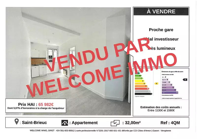 | Prix de vente : 65 982 € | Prix au m² : 2 062 € / m² |