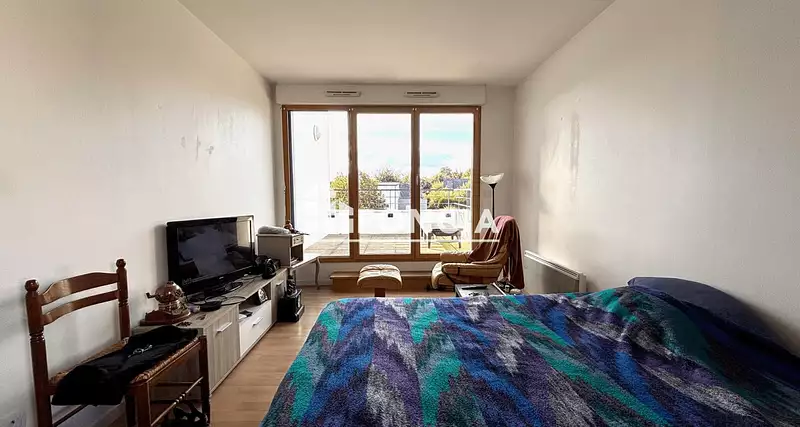 Dans une résidence entretenue, sécurisée et avec ascenseur, agréable T1 de 32 m² comprenant : entrée avec placard, pièce de vie lumineuse avec kitchenette ouvrant sur terrasse privative exposée Ouest, salle d'eau avec WC.