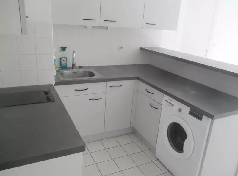 Aurillac Bd du pont rouge au 6 éme étage dans une copropriété de 1990 , F2 avec cuisine ouverte équipée, séjour, 1 ch, salle de bain , parking privatif, ascenseur...Chauffage individuel électrique L'appartement est actuellement loué (385 euros + 40 euros de charges) Copropriété de 135 lots - dont 47 lots habitation. (Pas de procédure en cours). Charges annuelles : 750 euros.