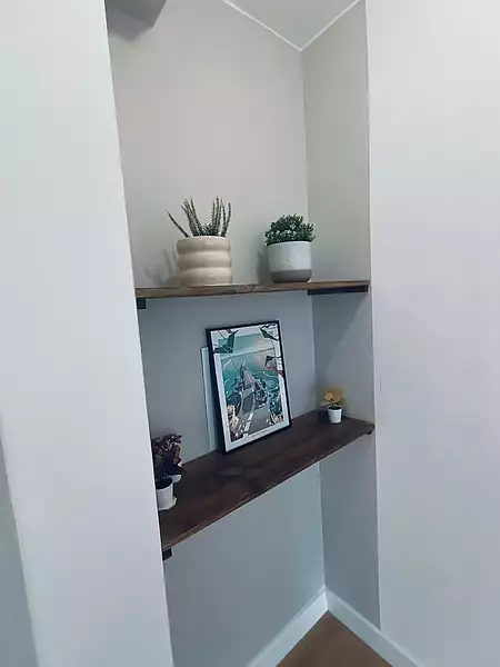 Entièrement rénové, il offre une pièce de vie lumineuse, une chambre séparée, ainsi qu'une salle d'eau moderne avec WC.