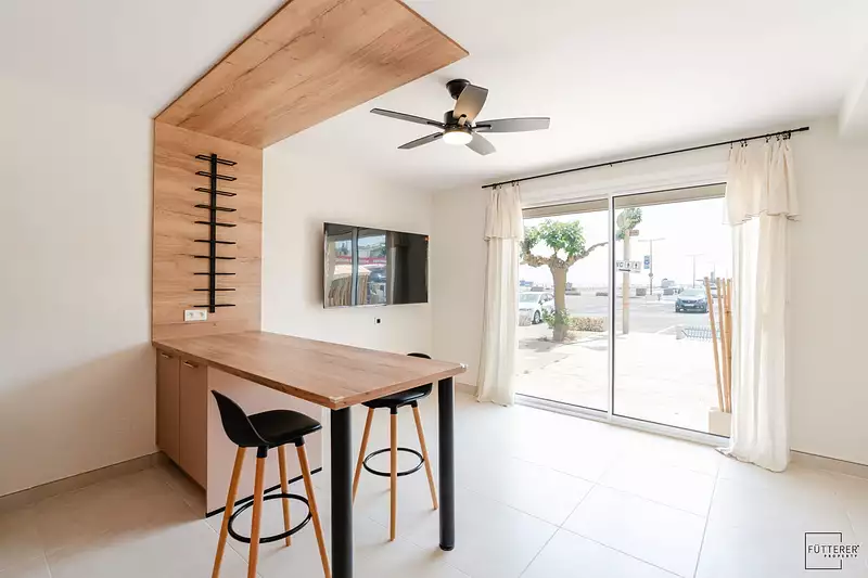Fütterer Property vous présente à Narbonne-Plage :Appartement 2 pièces entièrement rénové en 2024, situé au pied de la plage, dans la résidence « Les Mouettes », à seulement 50 mètres du sable. Description: Entrée, salle d'eau avec WC, salon/séjour avec cuisine aménagée, Chambre. Prestations: Volets roulants électriques/ Double vitrage/ Vue sur la mer et les Pyrénées!