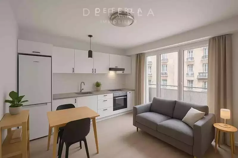 Appartement de 29,72m² au 2ème étage avec ascenseur d'un immeuble récent de bon standing et très bien entretenu avec gardien. Ce studio se compose d'une entrée avec rangements et penderie, d'un séjour donnant sur un grand balcon de 4,17m² exposé Ouest, d'une cuisine indépendante (accès au balcon), et d'une salle d'eau avec WC.