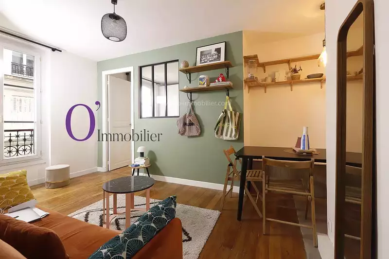 PARIS XVIIIème - Marx Dormoy/La Chapelle : à 5 mn à pied du métro Marx Dormoy, ce 2 pièces dont la distribution est optimisée se situe au 2ème étage d'un immeuble en pierre sur cour qui bien géré et entretenu. L'appartement est en très bon état. Il a été refait avec de bons matériaux et de belles prestations.
