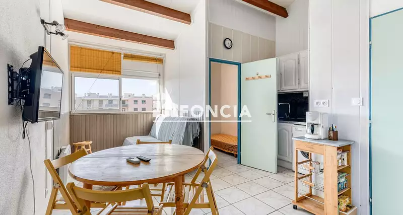 NARBONNE PLAGE, FONCIA vous présente : situé très proche de la plage et à 5 minutes du centre, dans une résidence avec parking privé, appartement 4-6 personnes très lumineux avec : entrée, une chambre, séjour-cuisine, salle d'eau avec WC, une chambre cabine. Menuiseries double vitrage avec volets roulants, électricité rénovée. Toutes les pièces ont une fenêtre y compris la salle d'eau. Idéal pour votre pied à terre à la plage ou pour votre investissement locatif saisonnier.