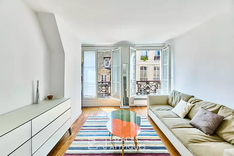 A quelques pas de l'église Saint-Paul et de l'Hôtel de Ville, ce charmant appartement de 34,15m² Carrez se niche au 3ème étage d'une petite copropriété paisible datant de 1820, offrant un cadre intimiste au coeur du Marais. Dès l'entrée, un vaste séjour baigné de lumière s'ouvre, éclairé par deux grandes fenêtres exposées plein Sud, offrant une vue typiquement parisienne, entre toits et façades de pierre Cet espace de vie convivial se prolonge par une cuisine américaine moderne, entièrement équipée. Côté nuit, une chambre confortable sur rue, également exposée plein Sud, bénéficie d'une belle luminosité. Une salle d'eau contemporaine avec WC, récemment rénovée, ainsi qu'un dressing fonctionnel viennent parfaire l'agencement. Une cave en sous-sol complète ce bien rare, véritable havre de paix dans l'un des quartiers les plus prisés du Marais. Un pied-à-terre idéal, dans l'un des quartiers les plus recherchés de Paris, où se rencontrent patrimoine, créativité, gastronomie et douceur de vivre. Métro : Saint-Paul CLASSE ENERGIE : D/ CLASSE CLIMAT : B Montant moyen estimé des dépenses annuelles d'énergie pour un usage standard, établi à partir des prix de l'énergie de l'année 2023 : entre 700 euros et 970 euros par an Les informations sur les risques auxquels ce bien est exposés sont disponibles sur le site Géorgiques : https://www.gé Contact : Thomas 07 67 40 13 65 RSAC : 893 991 273 Paris Copropriété de 62 lots - dont 38 lots habitation. (Pas de procédure en cours). Charges annuelles : 1385 euros. Thomas Lelong (EI) Agent Commercial - Numéro RSAC : 893991273 - Paris.