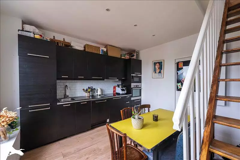 Quartier ROSIERS- Dans un immeuble ancien au 3éme et dernier étage en duplex, un appartement de 35m² carrez ( 60 m² au sol ) comprenant : Au premier niveau : entrée, cuisine dinatoire de 15m² Au Second niveau : un séjour ( possibilité de transformer en chambre), une chambre, salle de bain avec wc. Une cave. Calme et lumineux.