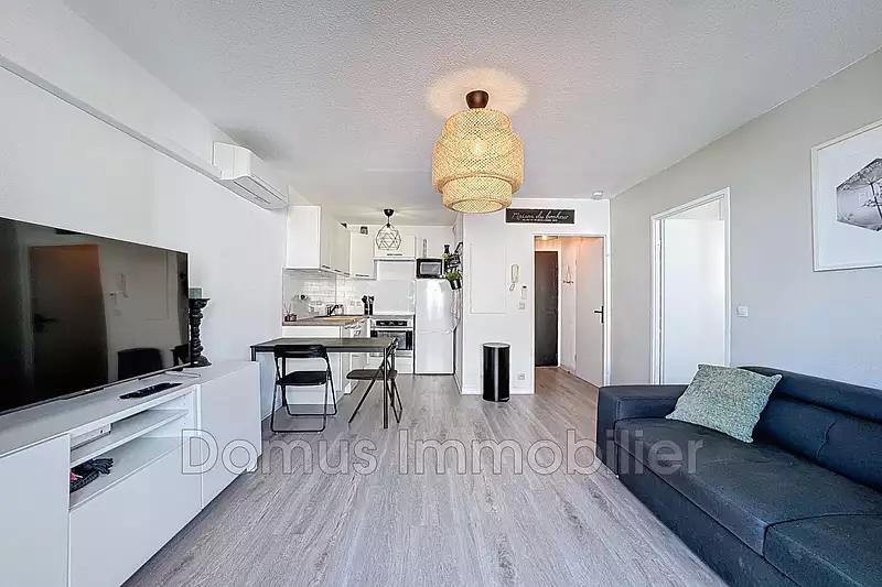 Idéalement situé au 1er étage d'un immeuble résidentiel en parfait état, construit en 2007 et aux communs soignés, ce bien de 34 m² se compose d'un séjour lumineux de 18 m² avec une cuisine américaine entièrement équipée, une chambre, salle de douche avec espace buanderie et WC. Une terrasse de 9 m², un stationnement privé et l'accès à une piscine commune viennent compléter ce bien.