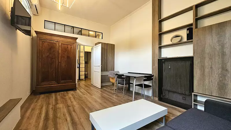 Dès l’entrée, une porte blindée s’ouvre sur une agréable pièce de vie lumineuse, complétée d’une cuisine américaine moderne et entièrement équipée. Une salle d’eau avec Wc ainsi qu’une mezzanine optimisant l’espace nuit permettent de profiter pleinement des 35 m2 exploitables. Une porte arrière donne directement sur le jardin, parfait pour savourer son café en extérieur !