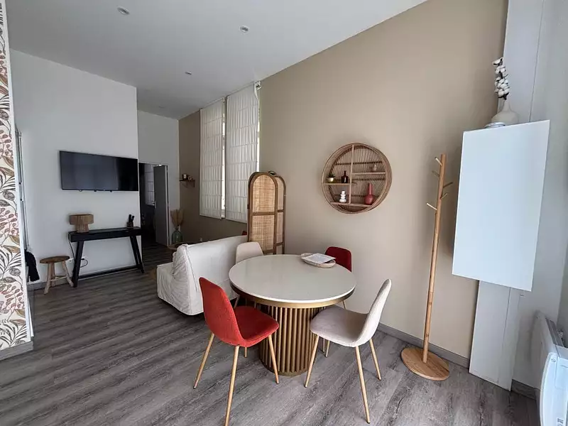 Berck plage dans quartier calme et résidentiel à 200 m de la Mer Au rez de chaussée avec accès privatif : Beau T2 de 35 m² entièrement rénové et composé d'un beau séjour salon cuisine aménagée et équipée ouverte; une salle d'eau avec wc, une baignoire balnéo, une chambre,