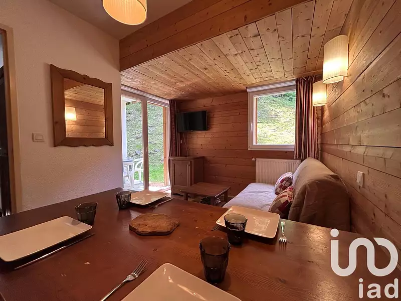 iad France - Débora Langlois vous propose: Situé en rez-de-chaussée d'une résidence avec piscine semi- couverte, sauna et hammam, ce bel appartement T3 d' environ 35 m² offre un cadre de vie idéal pour profiter pleinement de la montagne, été comme hiver.