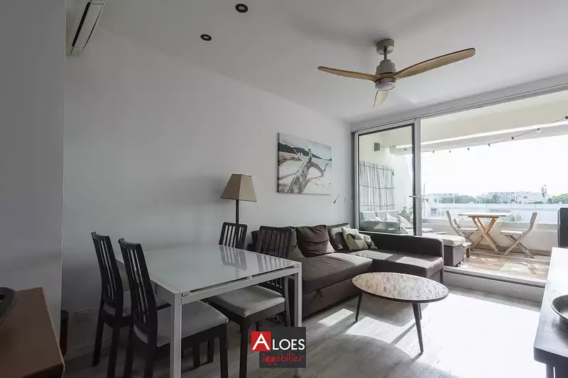 Cette magnifique marina traversante, située au dernier étage d'une résidence à Port Camargue, bénéficie d'une vue imprenable sur le port et d'une petite vue mer. La pièce de vie offre une belle sensation de volume grâce à ses hauts plafonds et s'ouvre sur une terrasse ensoleillée, parfaite pour profiter du cadre exceptionnel. La marina comprend une chambre confortable, une salle d'eau moderne et des WC séparés. Entièrement rénovée avec des matériaux de qualité, elle allie élégance et fonctionnalité. Un poste d'amarrage privé de 3 x 12 mètres est disponible en contrebas pour votre bateau. Un parking privé est inclus, ainsi qu'un local à vélos dans la copropriété. Vous apprécierez la proximité des plages et des activités nautiques, contribuant à un mode de vie paisible et dynamique. Offrant un cadre de vie privilégié, cette marina est une opportunité rare à quelques pas de la mer et proche de toutes les commodités.