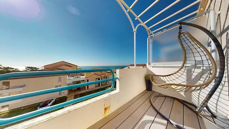 Niché au 3ème et dernier étage, cet appartement de 35 m2 (24 m2 carrez) offre une luminosité exceptionnelle et une magnifique vue sur l'océan.