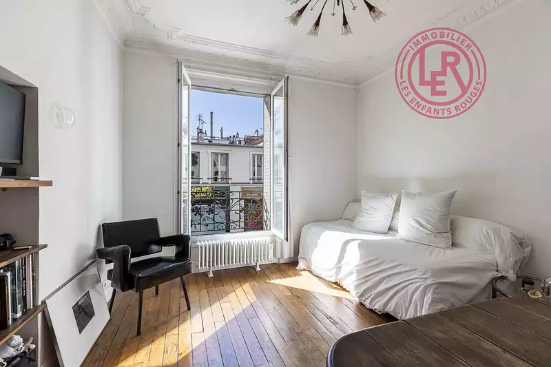 L'appartement, situé au 1er étage d'une copropriété fraîchement ravalée et bien entretenue, se compose d’une entrée, un séjour très lumineux avec vue dégagée sur le ciel exposée plein sud/ouest, une cuisine équipée, une chambre avec cheminée qui est totalement au calme de la cour et une salle de bains avec une grande fenêtre et des toilettes. Une cave complète ce bien ainsi qu'un rack à vélos.