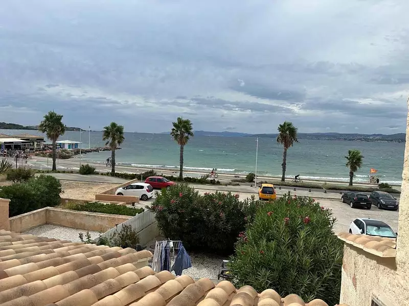 Entrée coint nuit, séjour avec cuisine équipée, salle d'eau, wc, placard ,loggia. Nombreux parkings privés à la résidence fermé avec barrière. Plage, commerces et port du Brusc à pieds. Produit rare