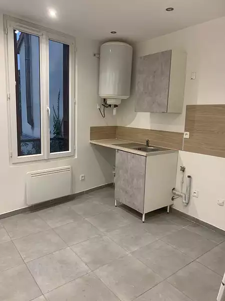 Une entrée, un séjour, une cuisine, 1 chambre, une salle d'eau avec un WC.