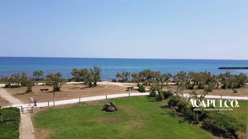 Agréable loggia vitrée avec vue sur la mer. A 50 m environ de la plage avec accès direct.